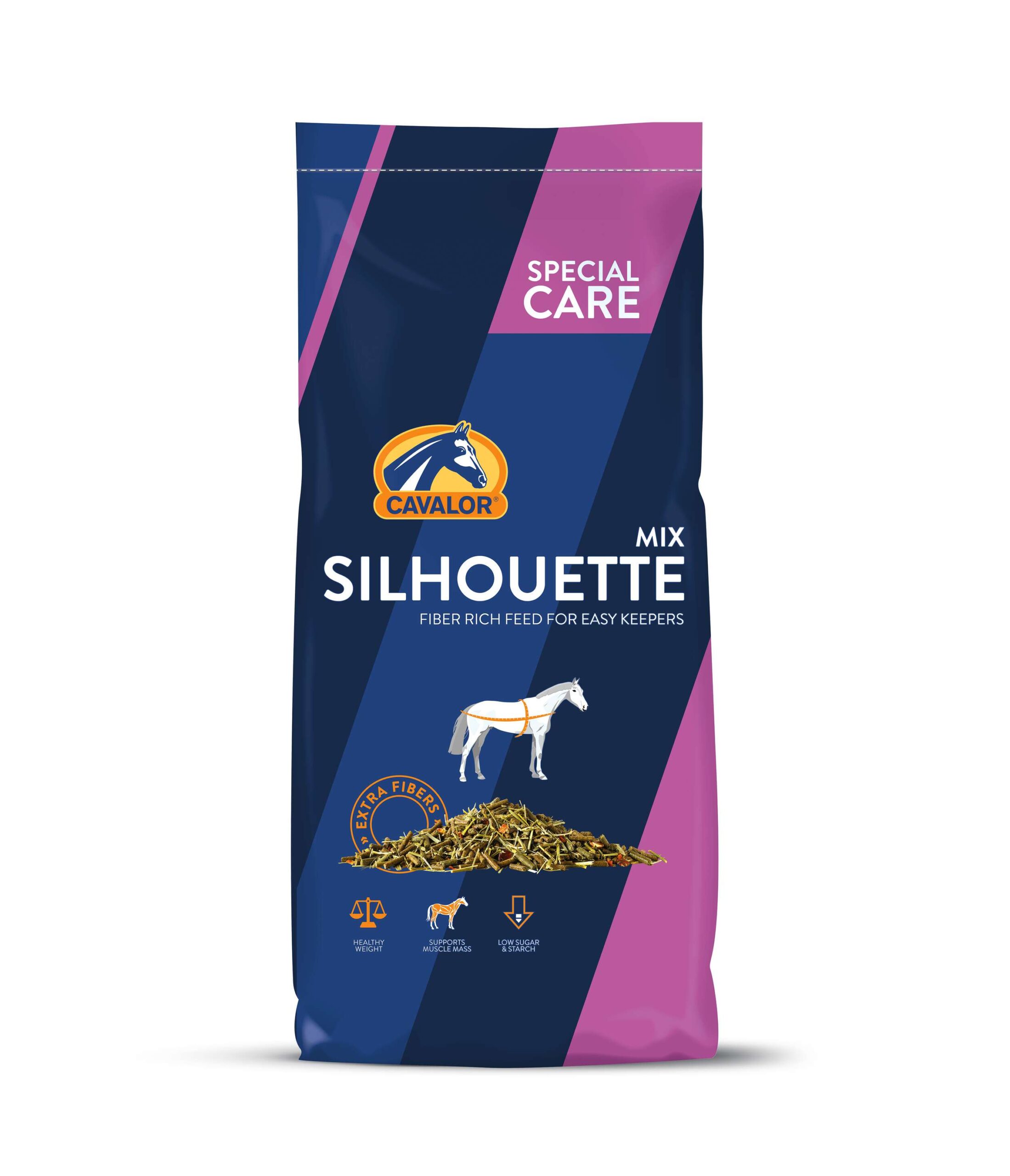 Cavalor Silhouette är en fiberrik musli för robusta raser, lättfödda hästar och hästar som är benägna att snabbt gå upp i vikt. Den tillgodoser alla essentiella näringsämnen, inklusive protein, vitaminer och mineraler. Med låg sockerhalt (5%) och stärkelsehalt (6%) ger den hästen energi från fiber. Den innehåller också lättsmälta proteiner med en aminosyraprofil som är mycket lik hästens egna muskler. Detta hjälper hästen att behålla muskelmassa samtidigt som den når en hälsosam vikt.